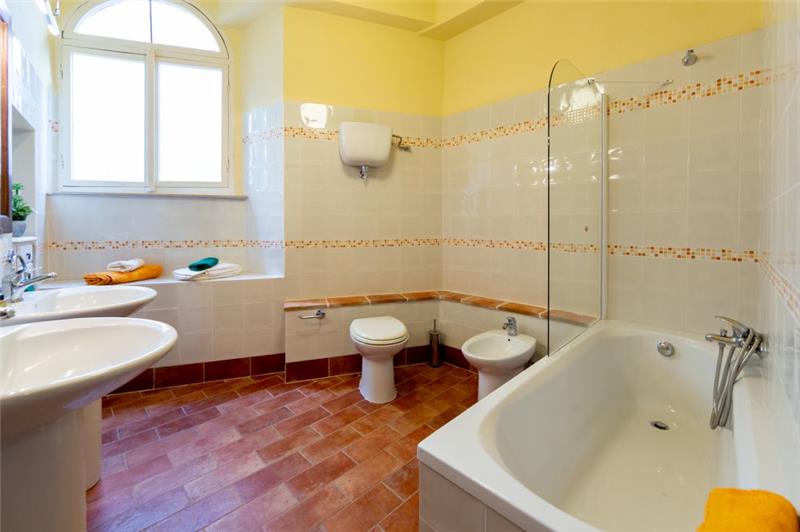 The apartment is set over the first floor of a Palazzo in the old town and is accessed via a stone staircase of 25 steps. The apartment has a large living area with ornate ceilings, a separate kitchen, two double bedrooms and a twin room, each with their own bathrooms. Guests have access to a communal patio on the ground floor, shared with the other apartments in the building.
