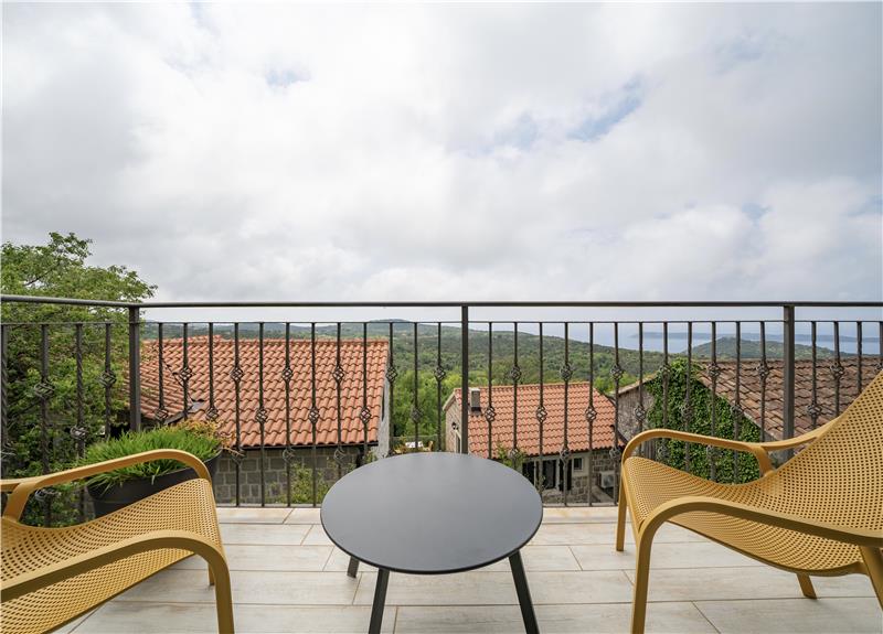The 2 bedroom apartment has been decorated in rustic style with beamed ceilings and stone detailing. There is an open-plan living-kitchen-dining room with fully equipped kitchen, two double bedrooms and shower room, and a spacious sea view balcony with table & chairs. Guests have access to 2 pools, a restaurant, car parking and BBQ, plus a shared TV room all on the resort. All apartments offer breakfast option (supplement applies). Additional services such as laundry and ironing can be arranged, while the reception can advise on and book local tours and excursions. A selection of 1 bedroom apartments (KT001) and a selection of studio apartments of studio apartment (KT001A), (KT001B) & (KT001C) are also available to book at this hamlet.