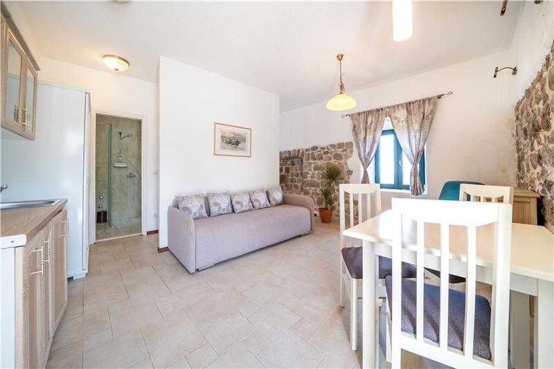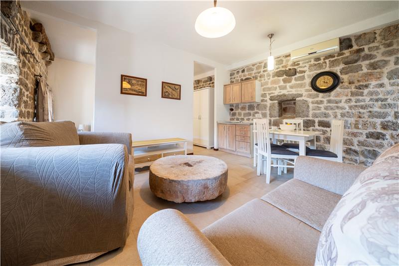This 2-bedroom apartment with sea views and 2 shared pools is set in a 300 year old renovated stone building on the edge of the Lustica peninsula. The apartment is one of just 10 properties on this traditionally built holiday village, surrounded by olive and pomegranate groves, with stunning views of the Adriatic and Kotor Bay.