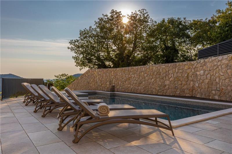 Favourite villa moment: Dinner alfresco by the pool, overlooking the stunning views of Krk.Stayed August 2014