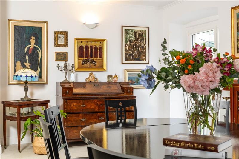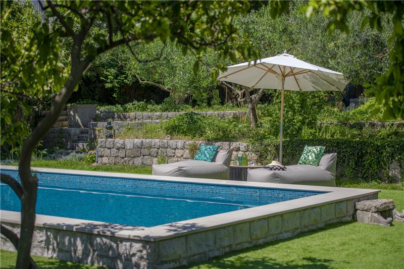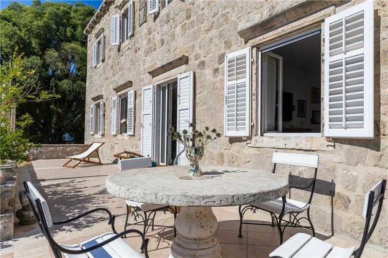 On the first floor guests will find an open-plan living and dining area with large windows framing views of the garden and harbour, and doors opening onto a large stone terrace with steps leading down to the garden. This floor has an adjoining kitchen which provides access to a small stone terrace complete with a traditional fireplace. The principal bedroom, located to the rear of the first floor, includes an en suite bathroom with a bath and views over the garden. The upper level accommodates two further bedrooms—one double and one twin—a shared shower room, a sitting area with comfortable seating, and a kitchenette with terrace. Outside, guests can enjoy extensive mature gardens, a heated swimming pool, surrounded by loungers and parasols, alongside a shaded gazebo with a barbecue, creating a welcoming space for outdoor gatherings and meals from early spring to late autumn. Due to its location, a slight sound of the main road can be heard from the villa.This distinguished home places guests within easy reach of Dubrovnik Old Town, a UNESCO World Heritage Site renowned for its ancient walls, cobbled lanes, and striking architecture. Nearby beaches such as Lapad and Bellevue provide idyllic spots for swimming and sunbathing, while the picturesque coastal promenade offers scenic walks and sunset views over the Adriatic. The surrounding area is rich in cultural and leisure opportunities, from fine restaurants and wine bars to open-air performances and festivals. For those eager to explore further afield, day trips to the Elaphite Islands, the Pelješac wine region, or the forested landscapes of Mljet National Park promise unforgettable experiences. For more information about the region please refer to our Dubrovnik Region and Dubrovnik City articles in our online magazine.
