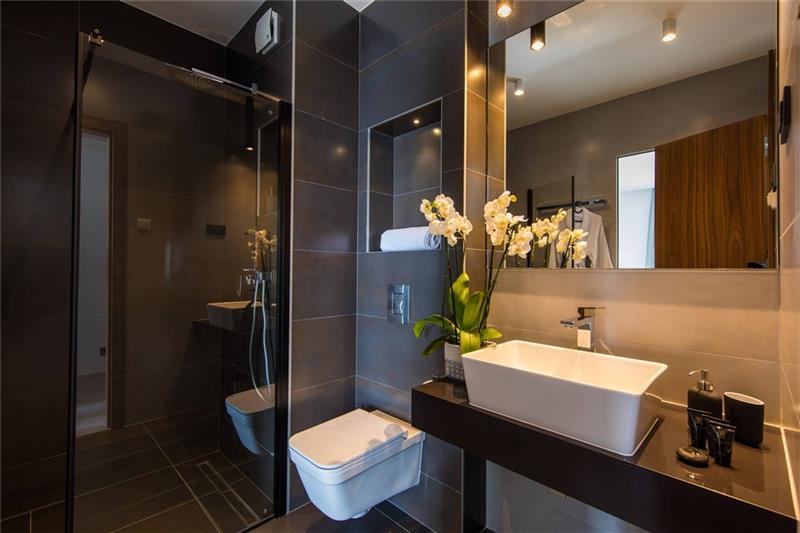 1st floor: Descending from the 2nd to the 1st floor guest will find 3 more bedrooms: 1 double with an ensuite bathroom with bath and shower and 2 twins with ensuite shower rooms. The double and one twin share a furnished balcony with sea views and one has a private furnished balcony with sea views. This floor also has a gym, sauna and a guest WC.