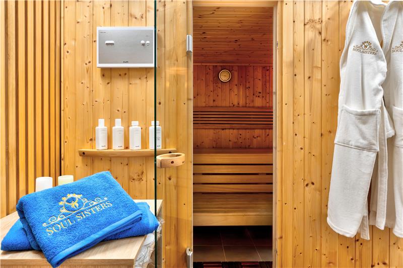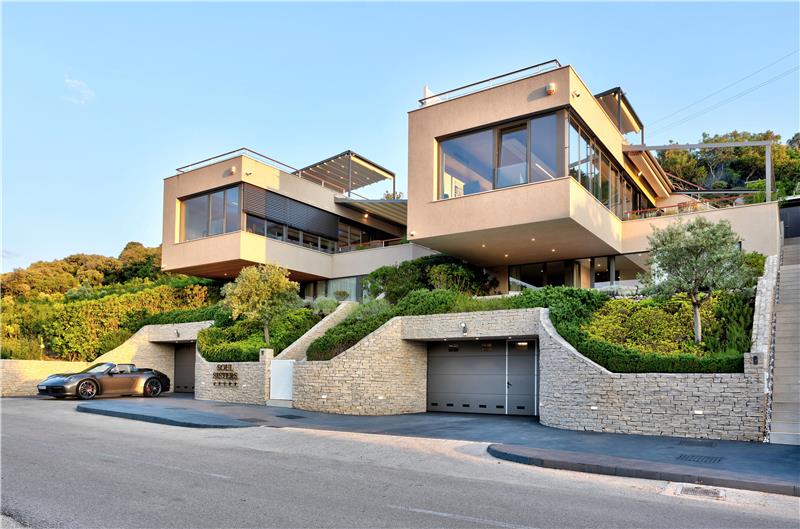 The villas are accessed via outdoor steps that lead to each floor of the 3 storey property and its rooftop pool and sundeck. Both villas have a sauna and gym on the ground floor with an additional Jacuzzi on the first floor. They both also have access to their own private garage. There is one twin bedroom and two double bedrooms, one of which has an en-suite, on the first floor, plus a separate bathroom. All the bedrooms have a sea view. The second floor consists of a living room and a spacious kitchen overlooking the sea with direct access to the terrace. Outside there is a rooftop heated pool, hot tub, sun deck and garden. Villa A also has sea views from both the front and back of the property along with additional greenery. Villa B offers guests partial sea views. There is also a fence between the two villas in order to give guests' extra privacy.