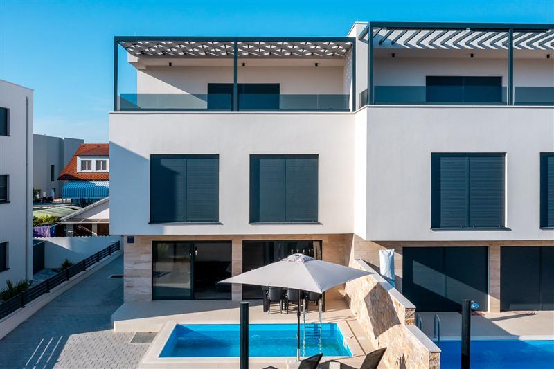 This modern villa, complete with a private pool and garden, is just a short walk from the beach and offers a peaceful retreat while remaining within easy reach of the lively town of Vodice on the Šibenik Riviera. Its refined layout and contemporary design make it an excellent choice for families or groups of friends seeking both comfort and convenience.